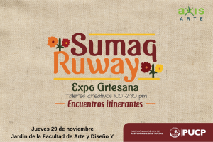 AXIS Arte, DARS y la Facultad de Arte y Diseño organizan el 4to encuentro itinerante con artesanos y artesanas que forman parte del colectivo «Talentos Artesanales», el jueves 29 de noviembre de 10:00 a.m. a 5:00 p.m . Este encuentro será el último del 2018, ¡no se lo pierdan!