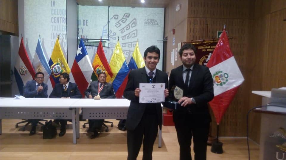MEJOR EXPOSICIÓN ORAL EN EL IV COLOQUIO DE CENTROS Y TALLERES DE INVESTIGACIÓN EN DERECHO PROCESAL – JENNER HUERTA