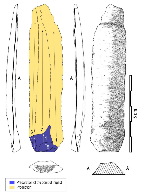 Según los autores, la pieza demuestra que en Huancarucma existía una cadena operativa completa de talla laminar, lo que implica: