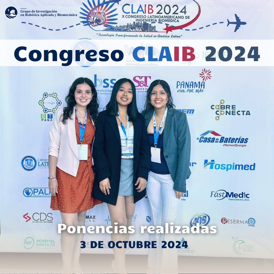 El pasado 3 de octubre, nuestras compañeras Rosa Silva y Angie Díaz realizaron con éxito sus ponencias en el X Congreso Latinoamericano de Ingeniería Biomédica (CLAIB 2024) en Ciudad de Panamá.