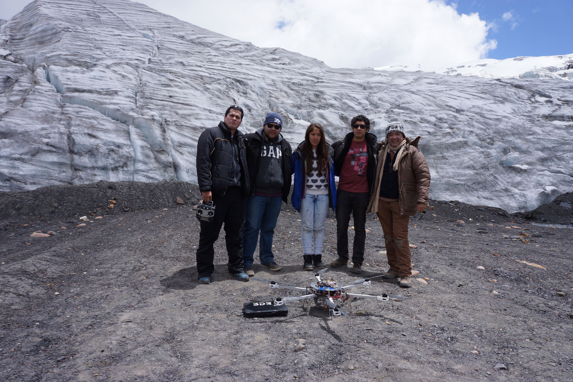 Teniendo en cuenta estas variables, dispusieron del dron que Mónica Abarca había preparado para su tesis de licenciatura y lo modificaron para que sirva en este nuevo contexto. En octubre de este año los ingenieros viajaron al glaciar y probaron exitosamente el vuelo de su sistema. “Esta es una innovación a nivel mundial, ya que normalmente no se vuela tan alto. Solo en realidades donde hay montañas elevadas, como en los Andes o en el Himalaya, se han hecho este tipo de experimentos”, comenta Andrés Flores, profesor del Departamento de Ingeniería.