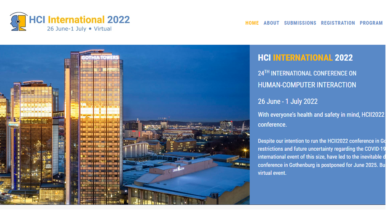 Enlace de la conferencia: 24th International Conference on Human-Computer Interaction (HCII 2022) https://2022.hci.international/
