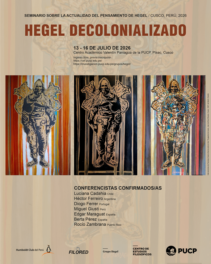 Con la idea de hacer un balance de estos debates, el Grupo de Investigación sobre la Actualidad del Pensamiento de Hegel y el Centro de Estudios Filosóficos de la PUCP, en colaboración con FILORED y el Humboldt-Club del Perú, anuncian la realización de su seminario anual 2026, bajo el título “Hegel decolonializado”. El Seminario tendrá lugar en la ciudad de Písac, Cusco (Perú), en el Centro Académico Valentín Paniagua de la PUCP, del 13 al 16 de julio de 2026. Hasta el momento han asegurado su participación los profesores Luciana Cadaiha (Chile), Héctor Ferreiro (Argentina), Diogo Ferrer (Portugal), Miguel Giusti (Perú), Edgar Maraguat (España), Berta Pérez (España) y Rocío Zambrana (Puerto Rico).