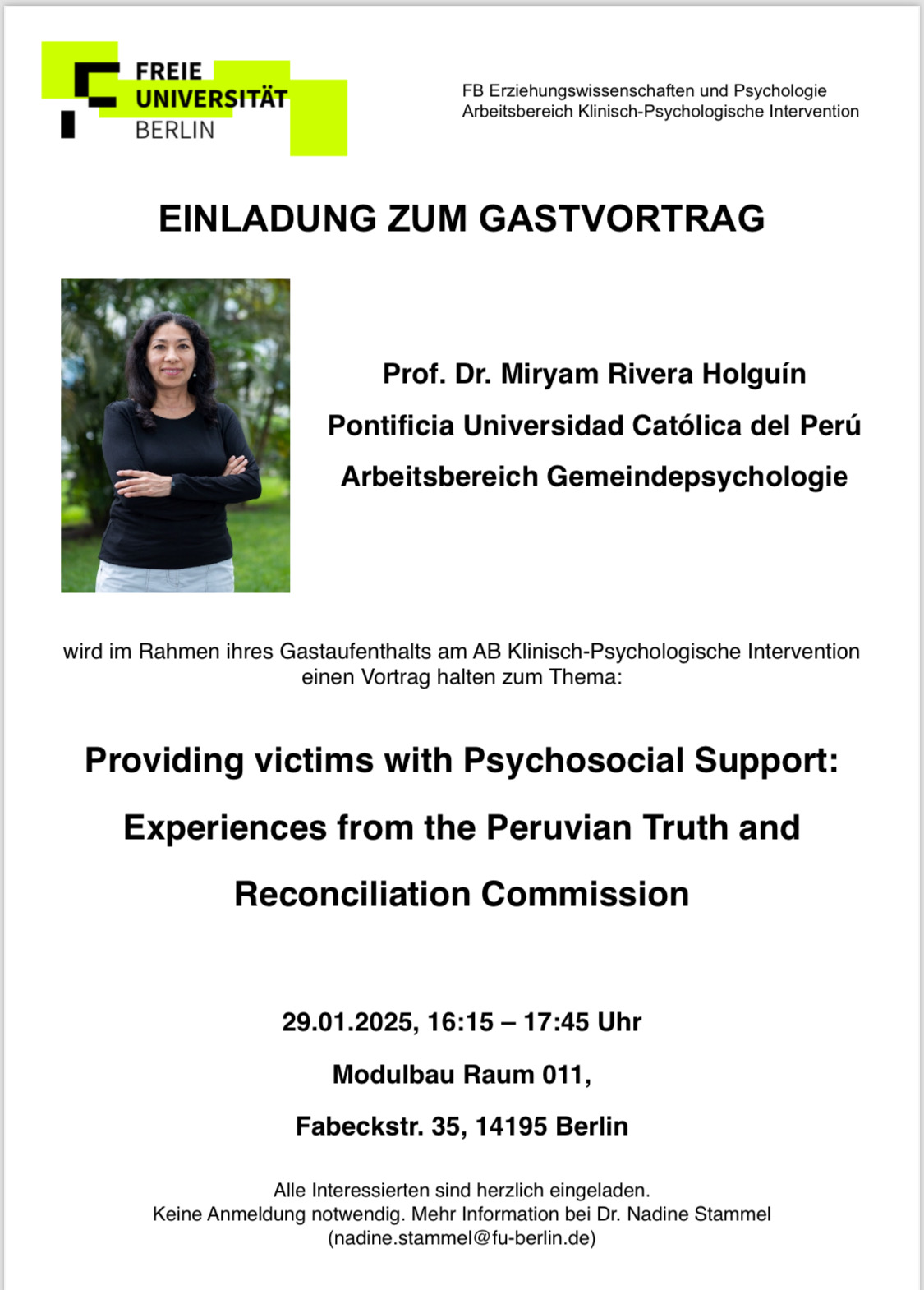 - Visiting Professor Nadine Stammel at PUCP in April 2026. Teaching activities in the undergraduate course Psychology and Violence