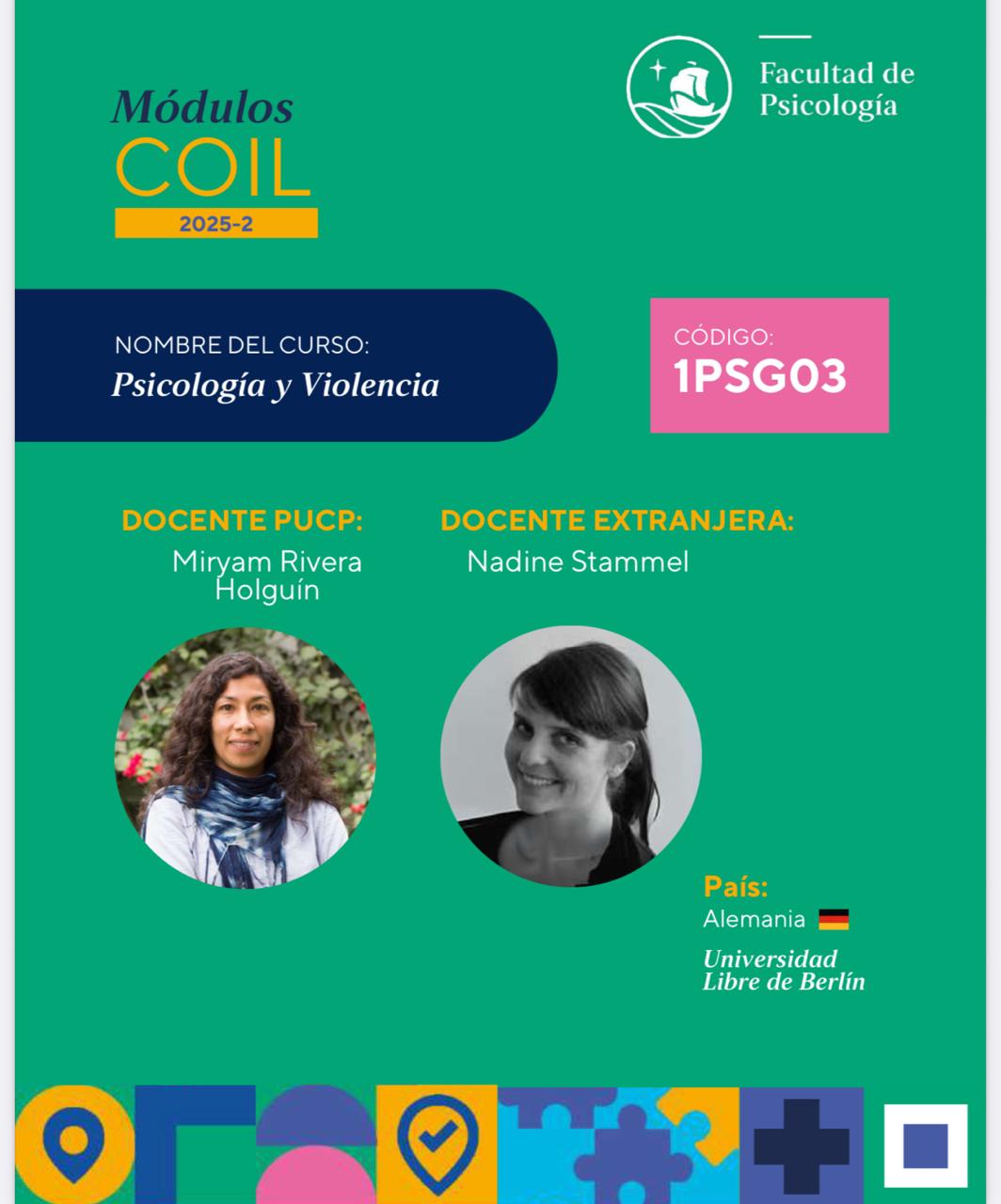 - Implementation of 2 COIL Modules (Collaborative International Learning Module) between Peruvian students (PUCP) and master students (FUB). Semester 2024-2 (página informativa) and semester 2025-2 (página informativa).