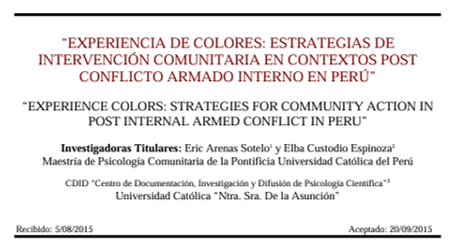 Desde la psicología social comunitaria se busca entender con las comunidades, las condiciones y procesos psicosociales que fortalezcan recursos y capacidades relacionados con la mejora de la calidad de vida. En las comunidades andinas del Perú son tres los aspectos que las caracterizan: el sufrimiento como secuela del Conflicto Armado Interno (CAI), la fractura de prácticas comunitarias, culturales, vivenciales y de reciprocidad en las diferentes poblaciones, y la forma de relacionarse con el otro. La intervención que presentamos de Salud Mental Comunitaria con poblaciones post CAI, promovió la capacidad de agencia y el revalorar las prácticas culturales utilizando la creatividad como elemento reparador e indicador de salud. Con esta finalidad, se planteó la mejora del ambiente en el que se vive a través del pintado de las casas de colores, cuyos significados para la comunidad estuvo ligado a la buena convivencia y el fortalecimiento de los lazos comunitarios.